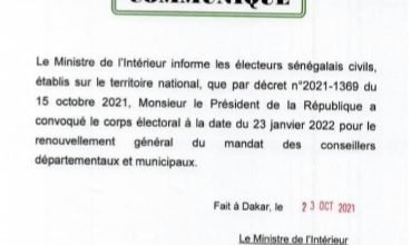 اعلن وزير الداخلية “أنطوان فيليكس ديوم” ، في بيان أصدره يوم امس، أنه بموجب مرسوم رئاسي ، فإن التاريخ الذي…