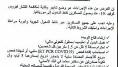 الأخبار (نواكشوط) – وقع وزراء الخارجية، والداخلية، والصحة، والتجارة والسياحة، والتجهيز والنقل، مقررا مشتركا يتضمن الإجراءات المفروضة على المسافرين القادمين…